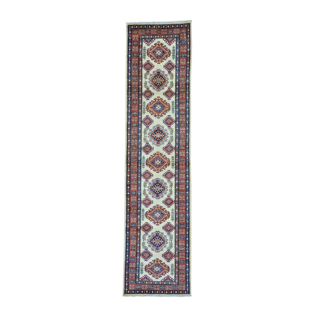 1800 Get A Rug sh29918 2 ft. 5 in. x 10 ft. Runner Tribal Design Ivory Super Kazak Pure Wool Oriental Rug Ivory