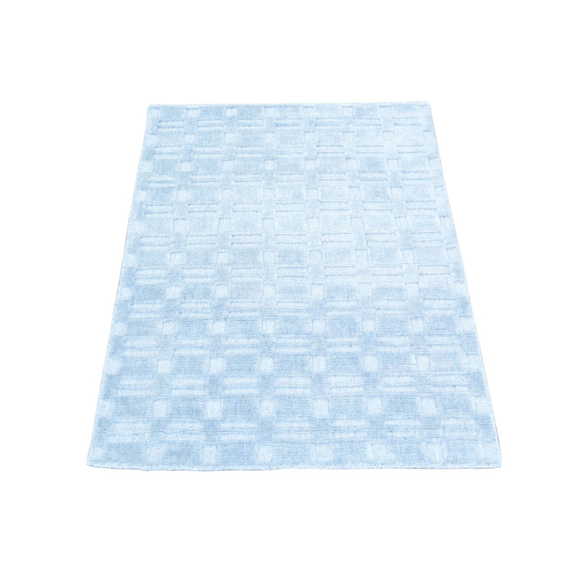 1800 Get A Rug sh29953 2 ft. x 3 ft. Tone on Tone Hand Loomed Wool and Bamboo Silk Rug Sky Blue