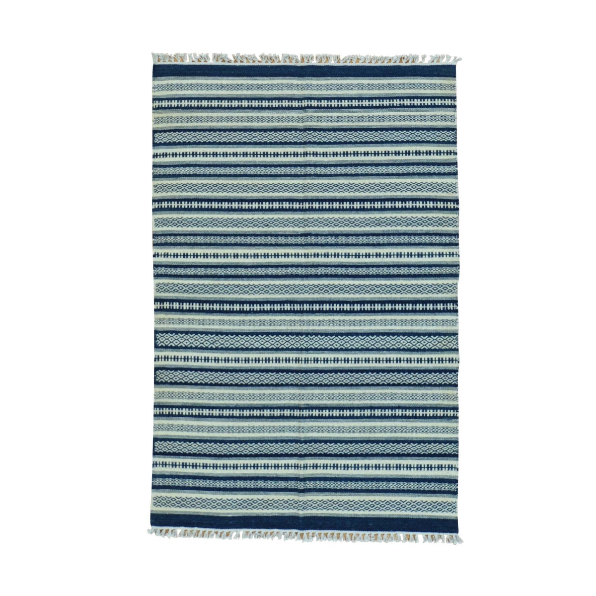 1800 Get A Rug sh30002 4 ft. x 6 ft. Durie Kilim Pure Wool Hand Woven Flat Weave Striped Rug Blue