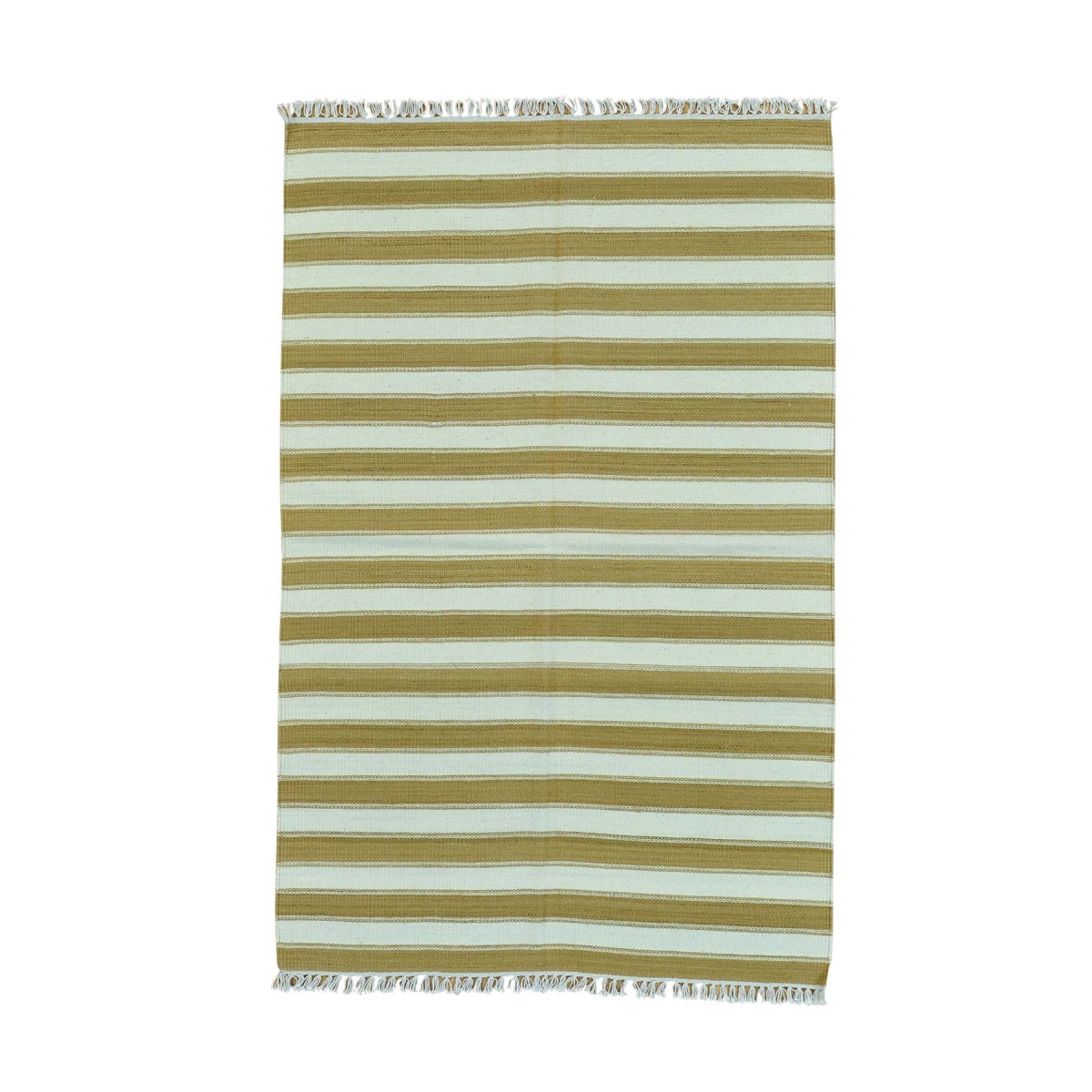 1800 Get A Rug sh30006 4 ft. x 6 ft. 1 in. Striped Pure Wool Hand Woven Flat Weave Kilim Oriental Rug Brown