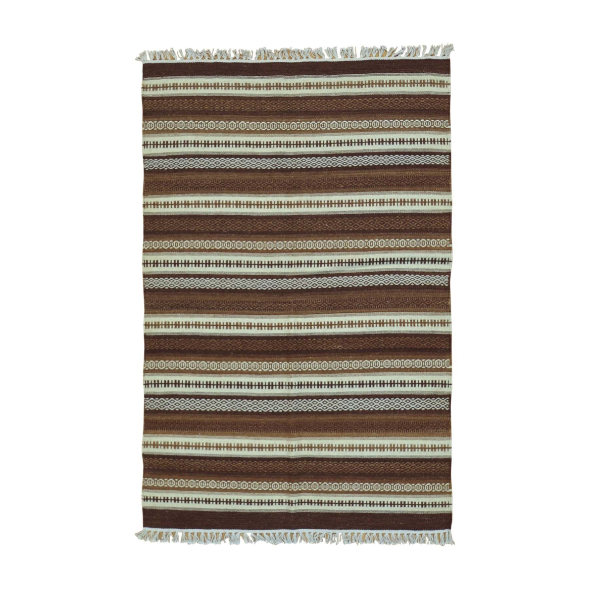 1800 Get A Rug sh30016 4 ft. x 6 ft. Striped Shades of Brown Kilim Pure Wool Hand Woven Rug Multicolor