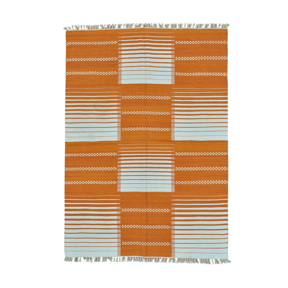 1800 Get A Rug sh30052 5 ft. 4 in. x 7 ft. 8 in. Reversible Durie Kilim Flat Weave Hand Woven Rug Orange