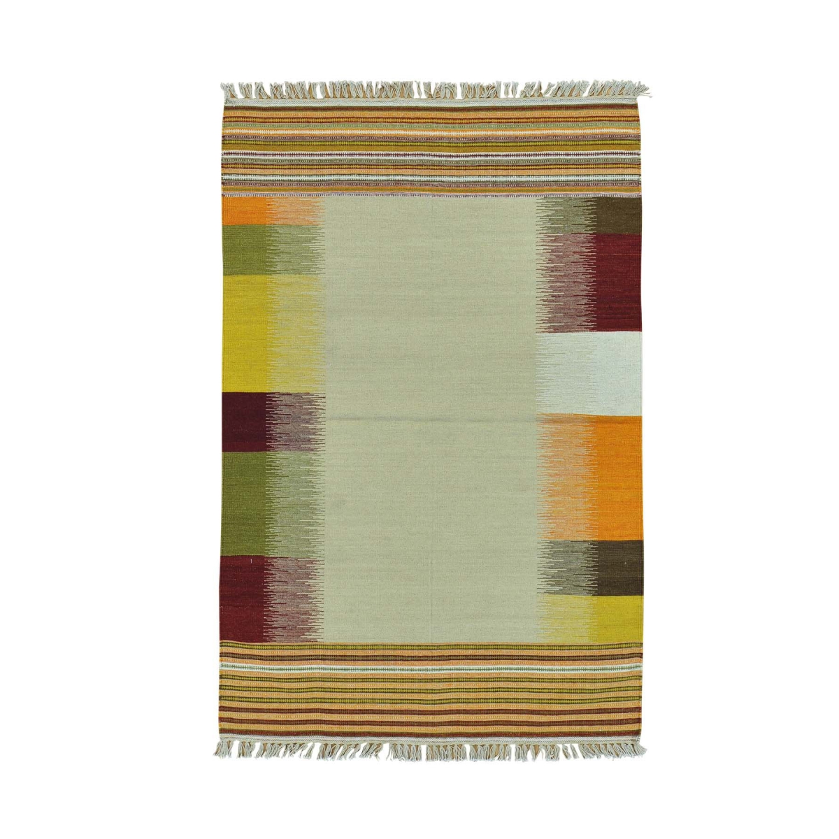 1800 Get A Rug sh30062 4 ft. x 6 ft. 2 in. Pure Wool Flat Weave Colorful Durie Kilim Hand Woven Rug Ivory