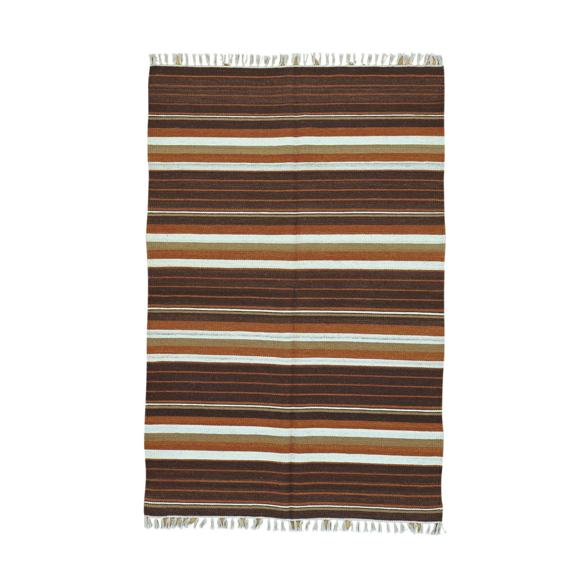 1800 Get A Rug sh30063 4 ft. x 6 ft. 1 in. Pure Wool Flat Weave Striped Durie Kilim Hand Woven Rug Multicolor