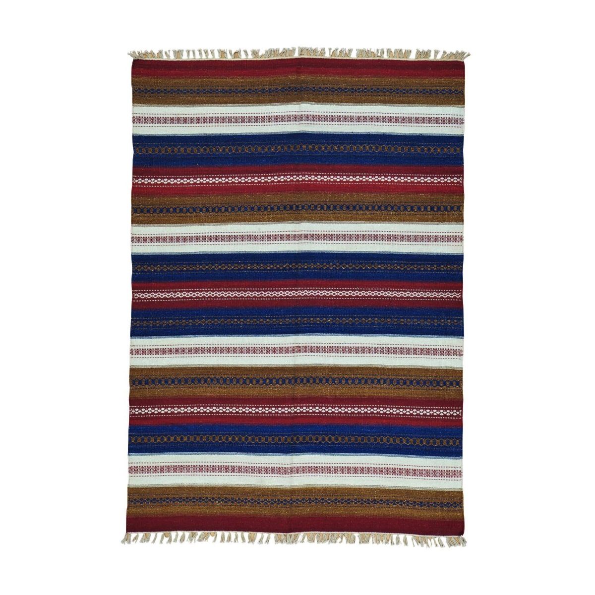 1800 Get A Rug sh30080 5 ft. 8 in. x 8 ft. Flat Weave Striped Kilim Hand Woven Reversible Oriental Rug Multicolor