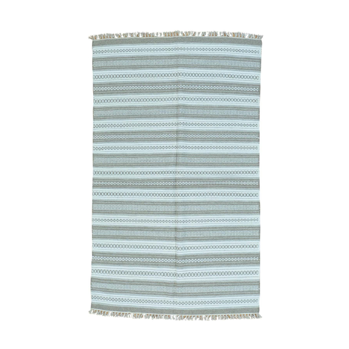 1800 Get A Rug sh30086 5 ft. 2 in. x 8 ft. 4 in. Flat Weave Hand Woven Striped Durie Kilim Pure Wool Rug Ivory