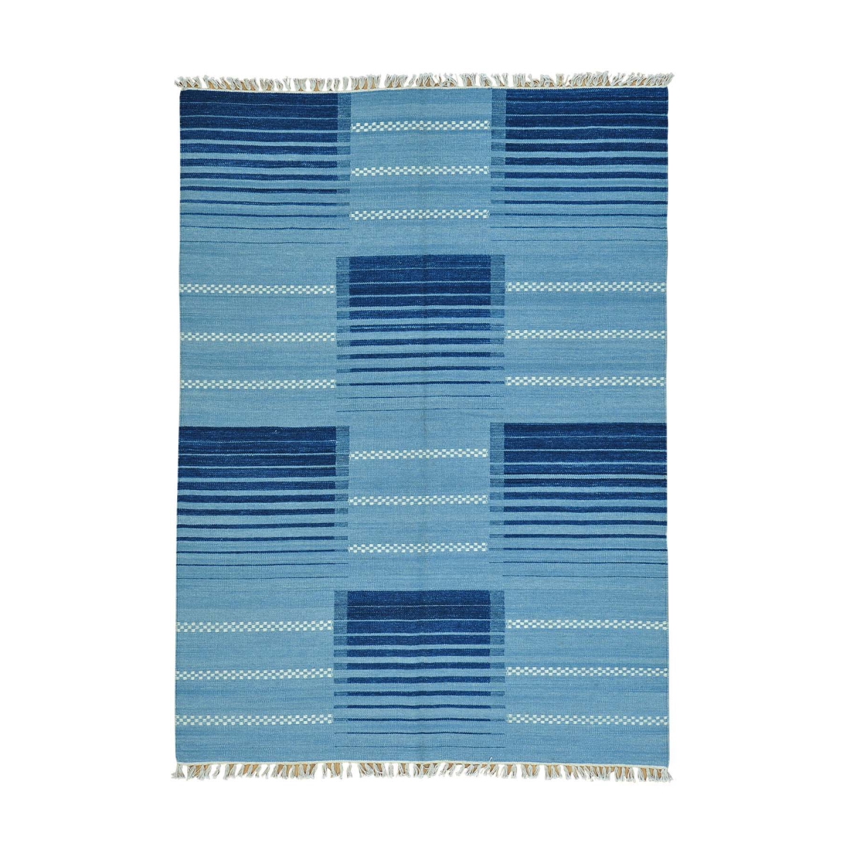 1800 Get A Rug sh30088 5 ft. 7 in. x 7 ft. 9 in. Flat Weave Hand Woven Reversible Durie Kilim Pure Wool Rug Blue