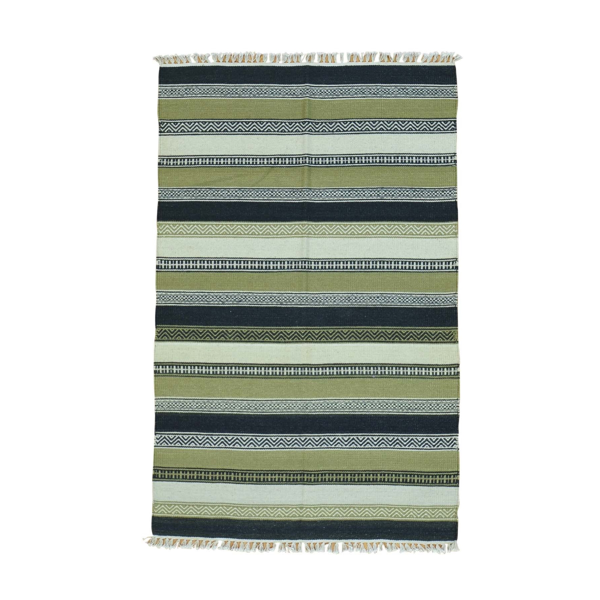 1800 Get A Rug sh30120 3 ft. 10 in. x 6 ft. 1 in. Hand Woven Striped Durie Kilim Flat Weave Pure Wool Rug Multicolor