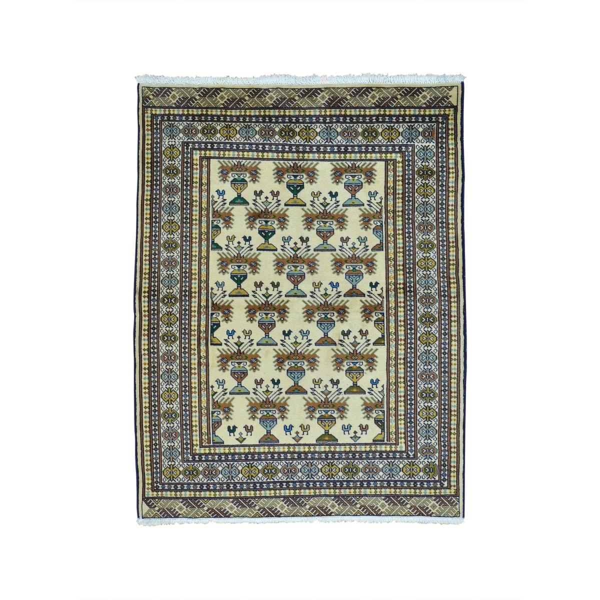 1800 Get A Rug sh30133 4 ft. 3 in. x 5 ft. 7 in. Hand Knotted Pure Wool Turkoman Bokara Oriental Rug Ivory