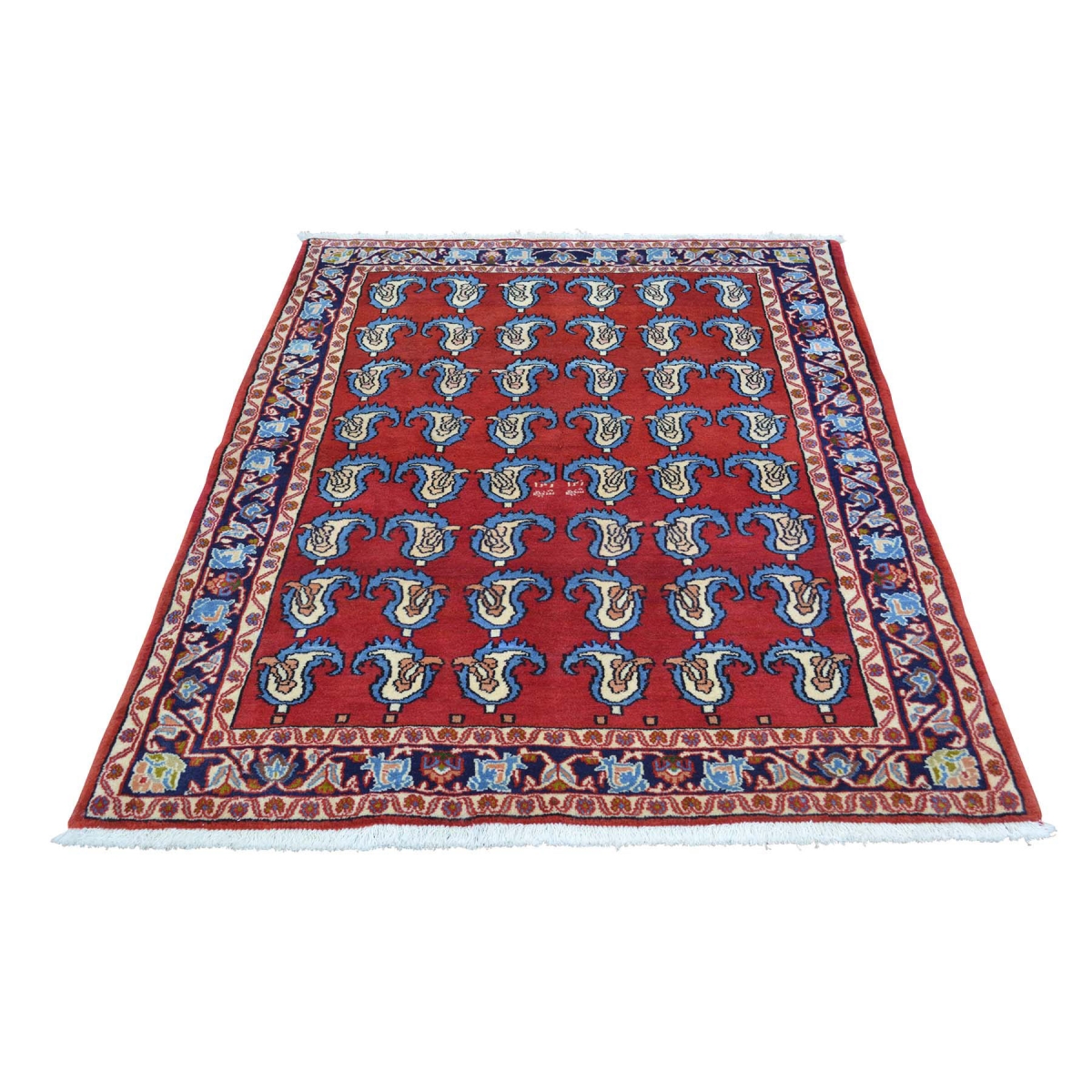 1800 Get A Rug sh30134 3 ft. 7 in. x 5 ft. Paisley Design Sarouk Pure Wool Hand Knotted Rug Red