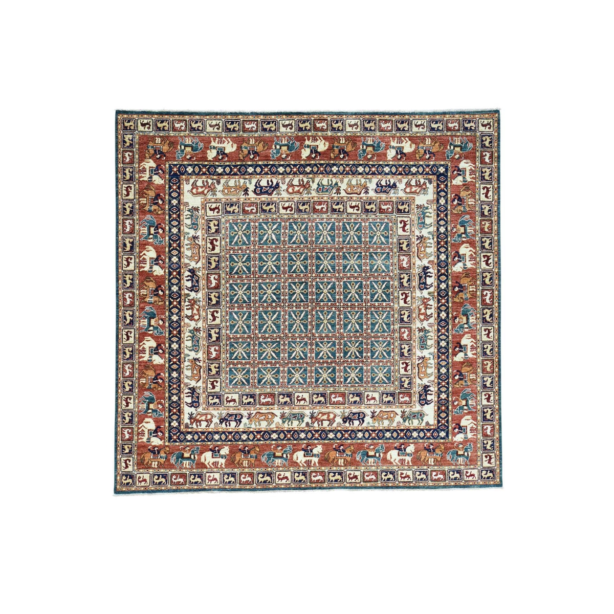 Square historical design antiqued pazyryk hand knotted rug
