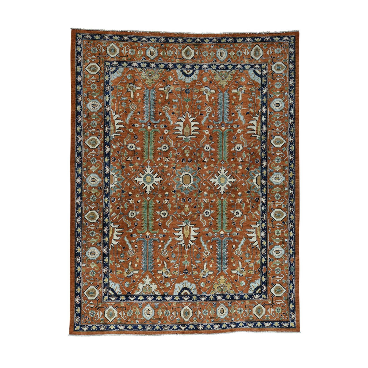 Antiqued heriz design pure wool hand knotted oriental rug