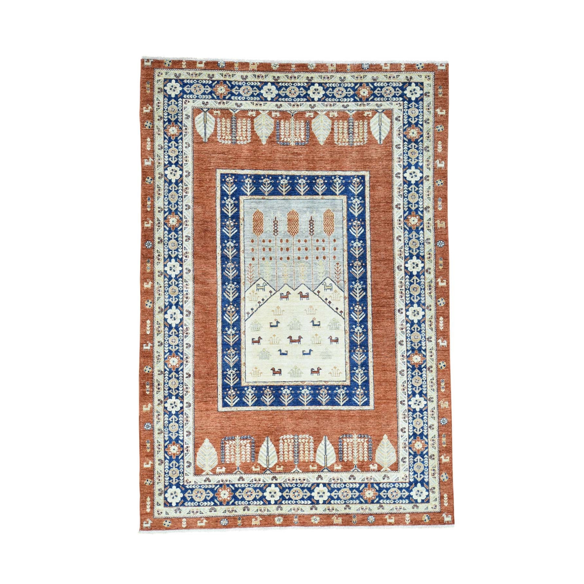 Hand knotted pure wool pictorial tree design peshawar rug