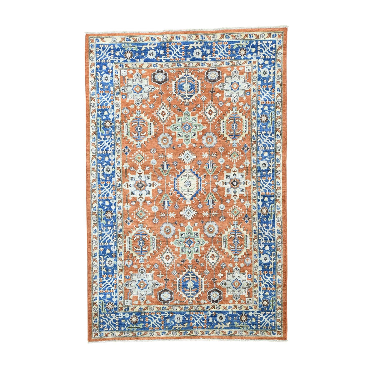 1800 Get A Rug sh30411 6 ft. x 9 ft. Hand Knotted Karajeh Geometric Design Pure Wool Oriental Rug Orange