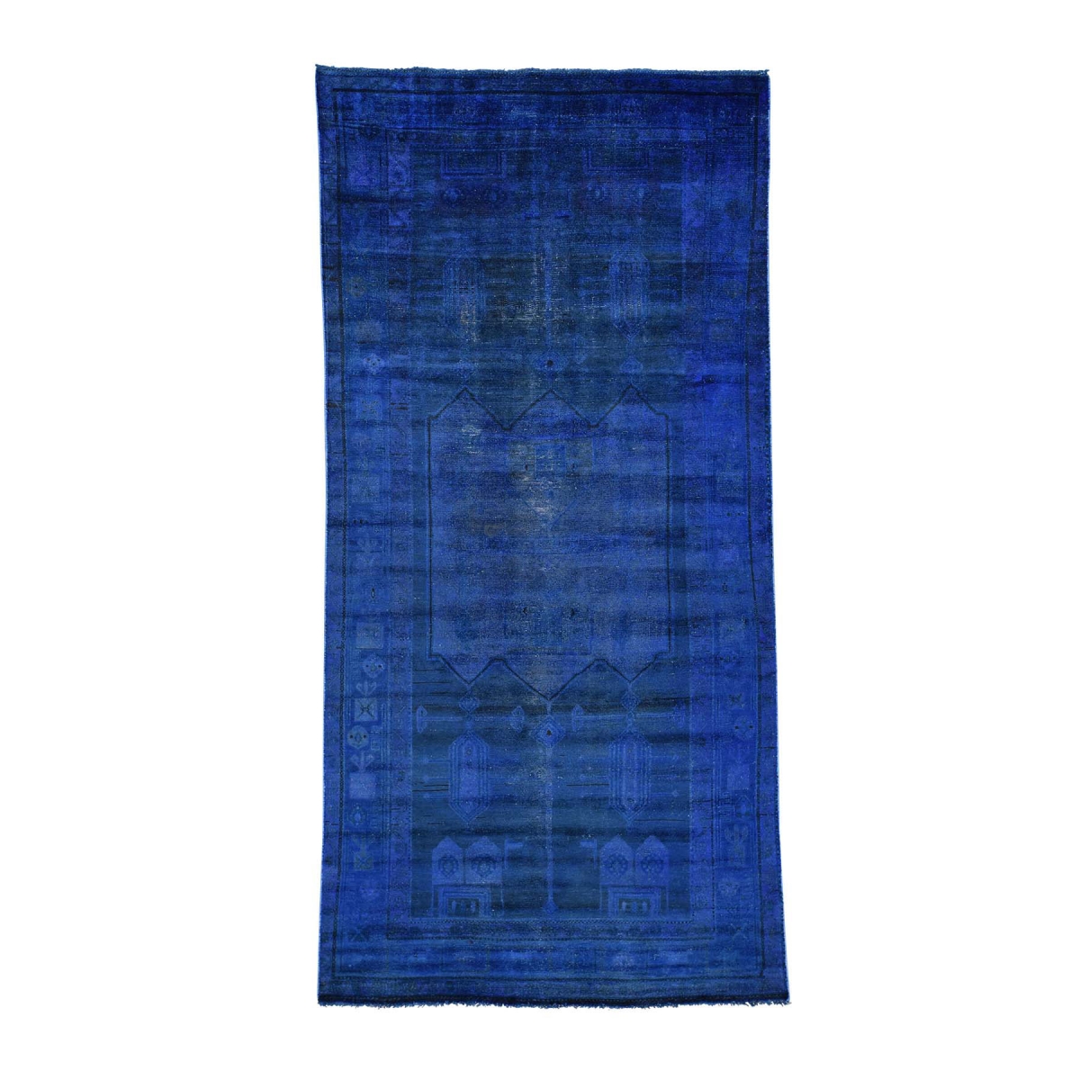 1800 Get A Rug sh30455 5 ft. x 10 ft. 3 in. Hand Knotted Worn Overdyed Persian Hamadan Wide Runner Carpet Blue