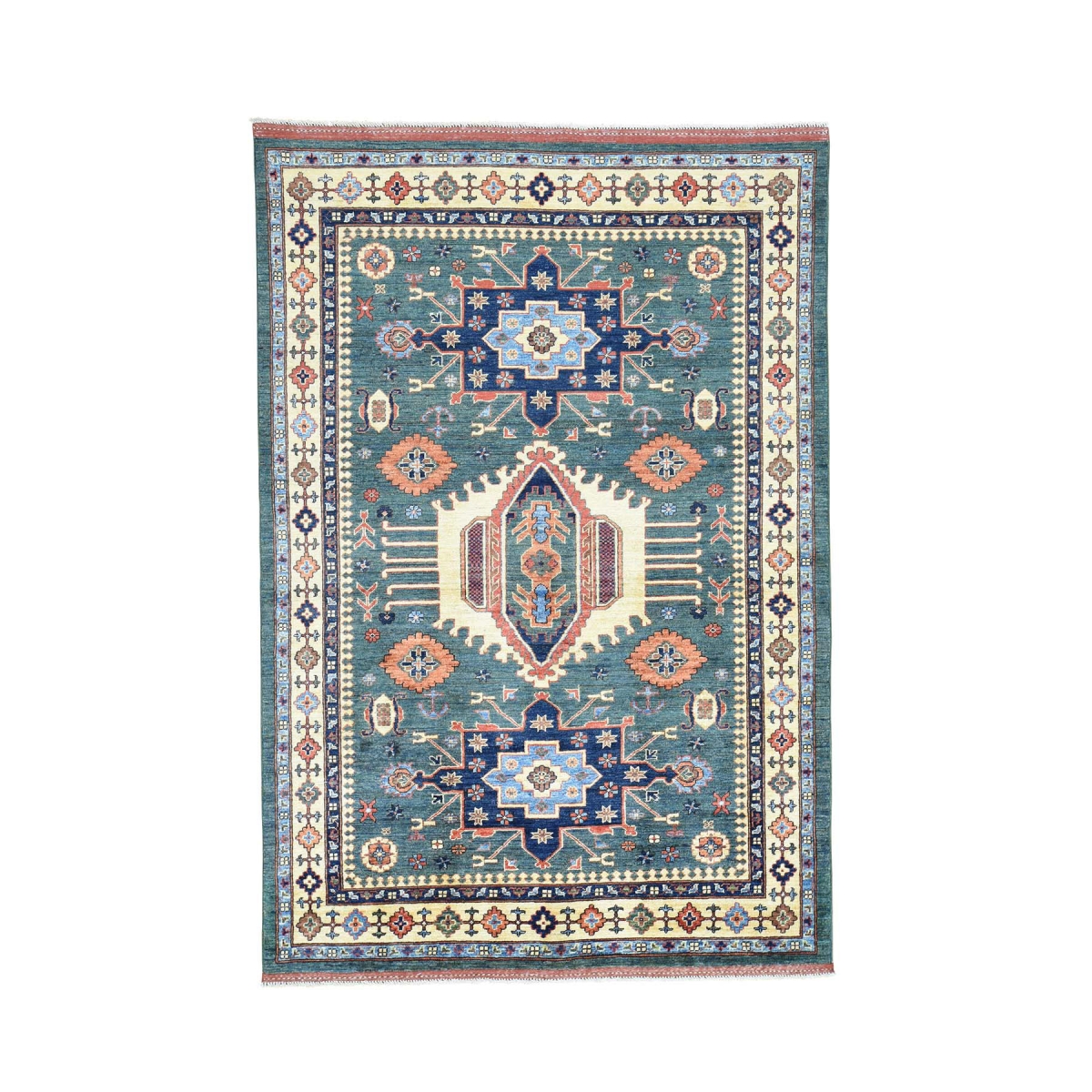Hand-knotted afghan ersari caucasian motifs oriental rug