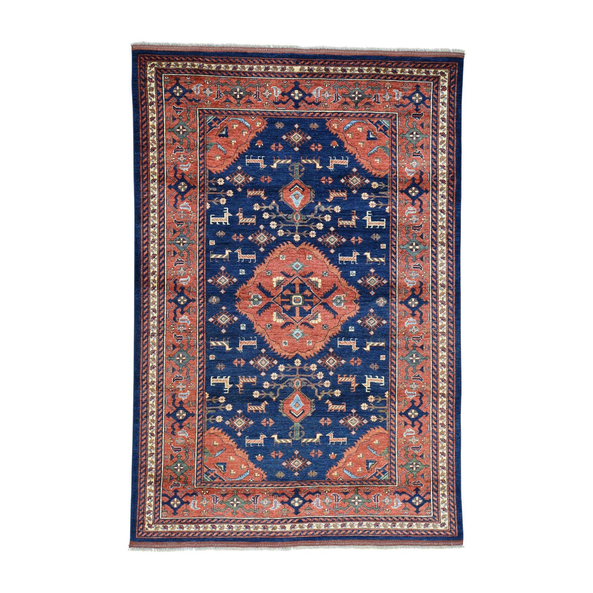 Navy blue afghan ersari pure wool hand knotted oriental rug