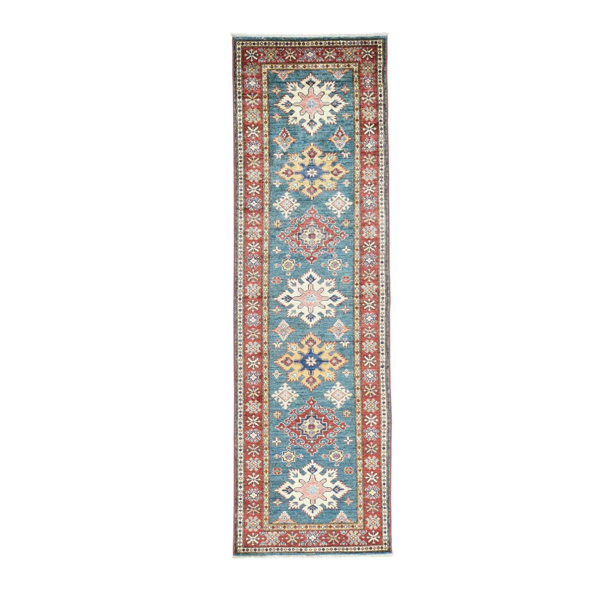 1800 Get A Rug sh30548 2 ft. 6 in. x 8 ft. 5 in. Hand Knotted Teal Super Kazak Geometric Design Runner Rug Blue