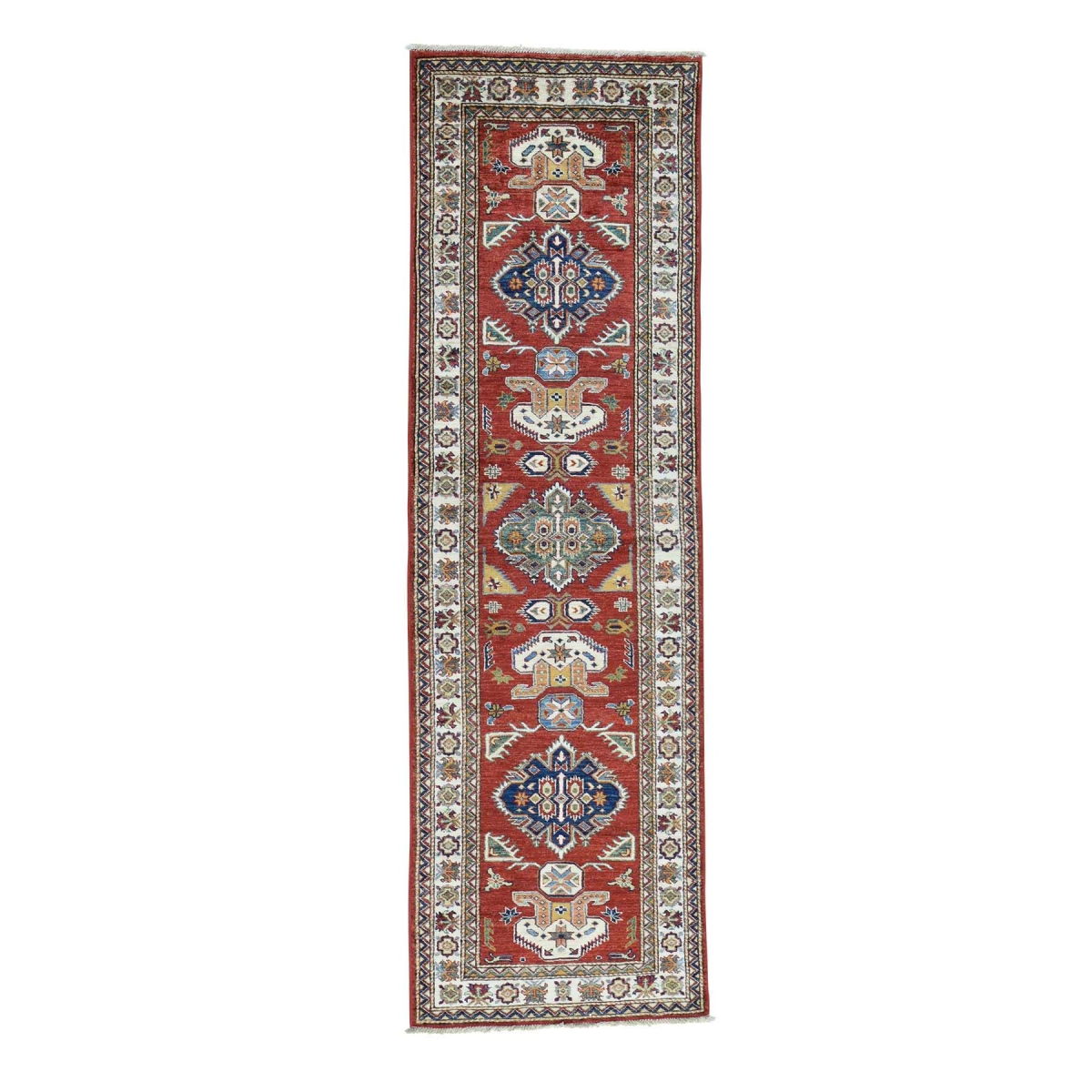 Hand-knotted red super kazak runner pure wool oriental rug