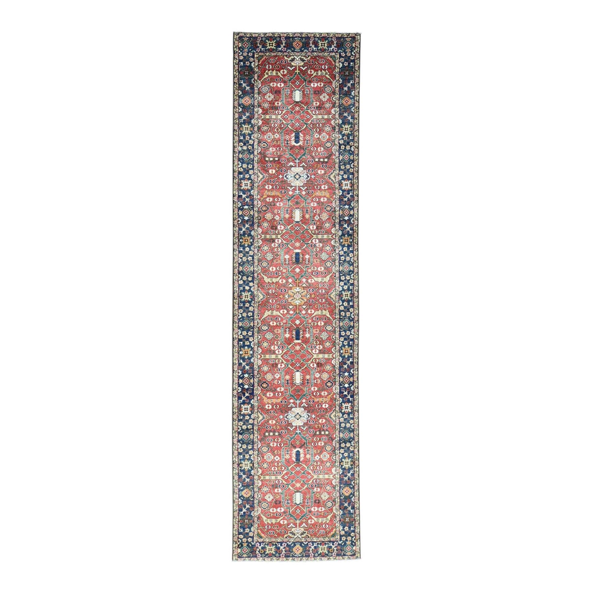 1800 Get A Rug sh30599 3 ft. 1 in. x 13 ft. Hand Knotted Heriz All Over Design Runner Oriental Rug Red