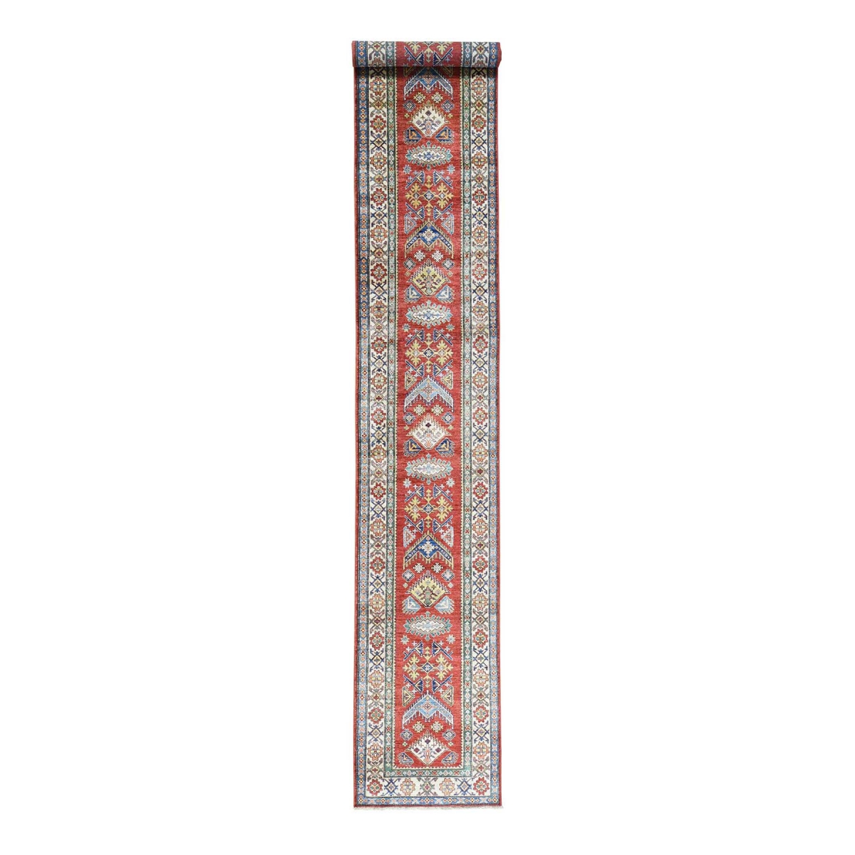 Hand-knotted xl runner geometric design super kazak carpet