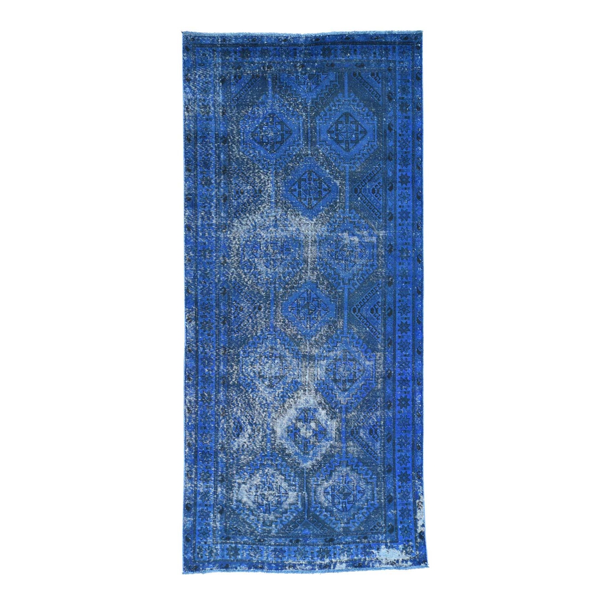 1800 Get A Rug sh30621 4 ft. 10 in. x 10 ft. 8 in. Hand Knotted Wide Runner Worn Persian Shiraz Overdyed Rug Blue