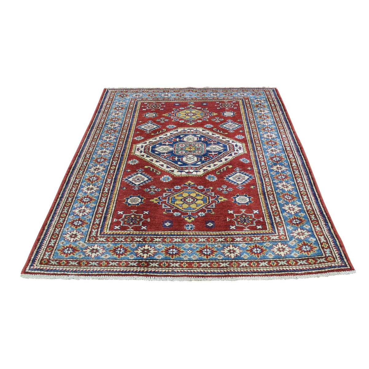 1800 Get A Rug sh30658 4 ft. 2 in. x 5 ft. 4 in. Hand Knotted Pure Wool Super Kazak Tribal Design Oriental Rug Red