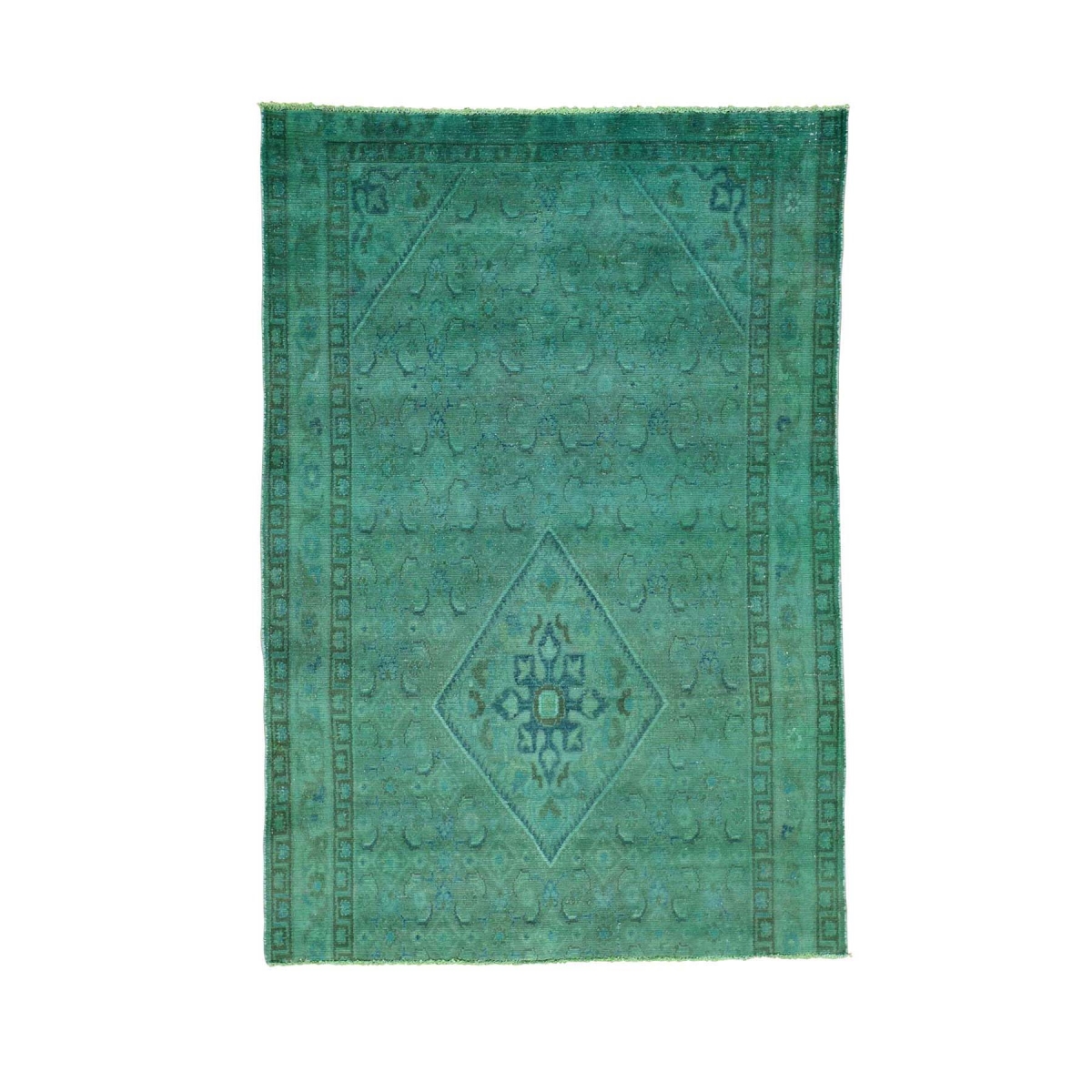 1800 Get A Rug sh30707 4 ft. 8 in. x 6 ft. 9 in. Hand Knotted Pure Wool Overdyed Persian Mashad Fragment Rug Green