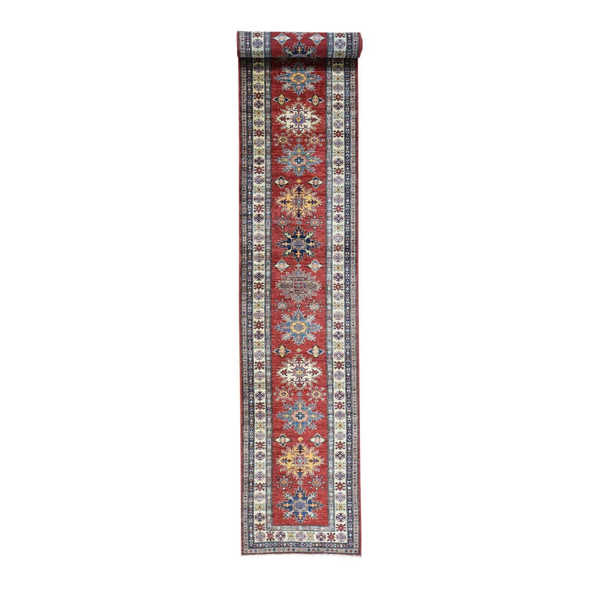 Hand-knotted xl runner geometric design super kazak carpet