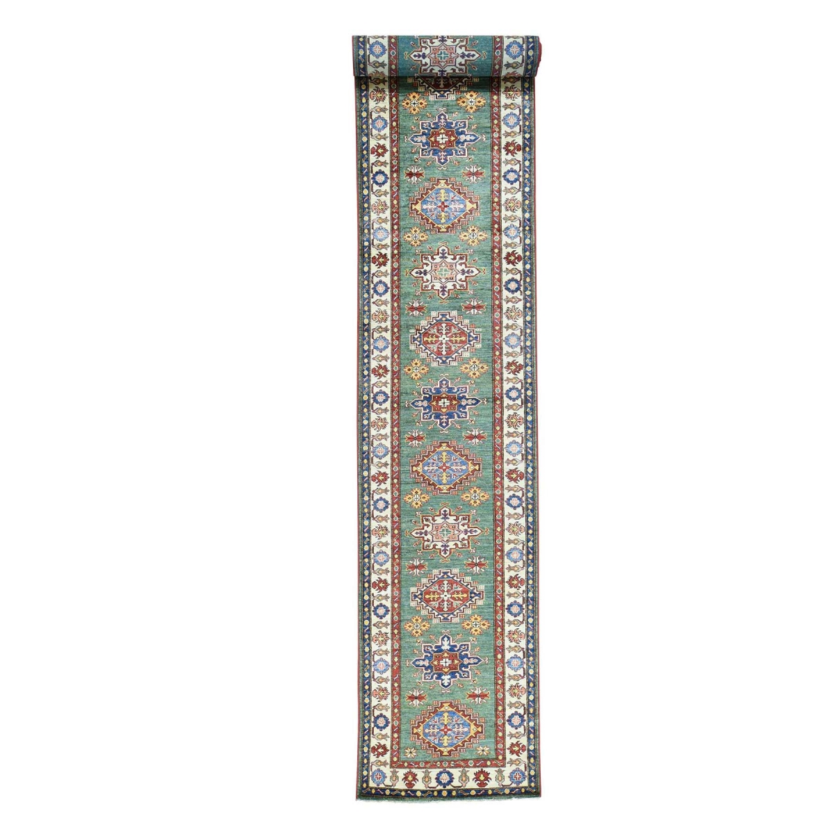 1800 Get A Rug sh30724 2 ft. 10 in. x 21 ft. 4 in. Hand Knotted Runner Tribal Design Super Kazak Carpet Green - Extra Large
