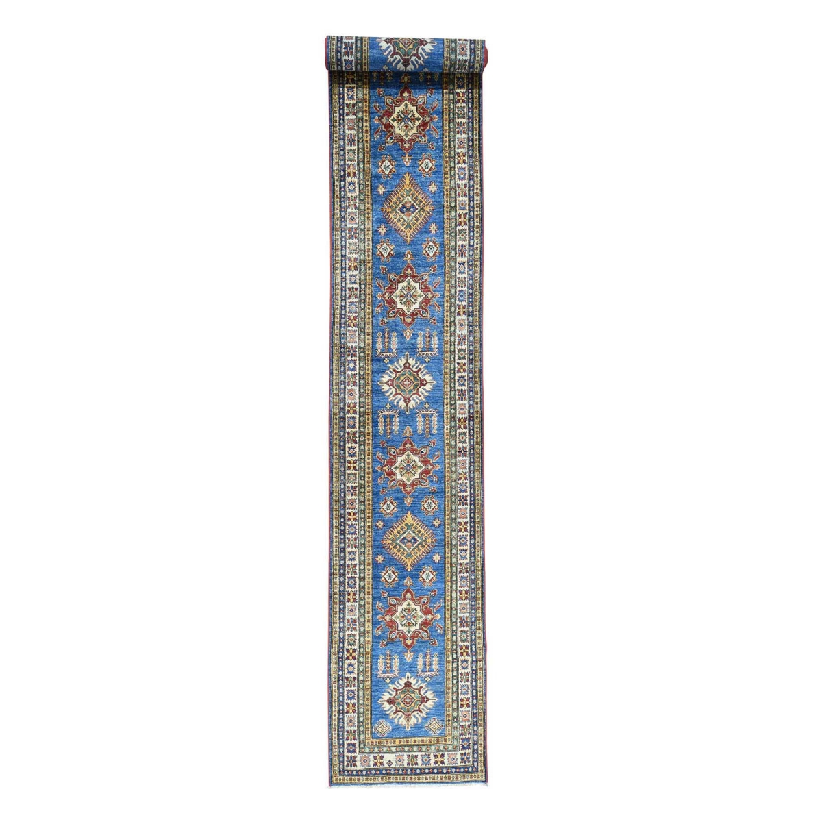 1800 Get A Rug sh30729 2 ft. 8 in. x 20 ft. 3 in. Hand Knotted Super Kazak Geometric Design Runner Rug Blue - Extra Large