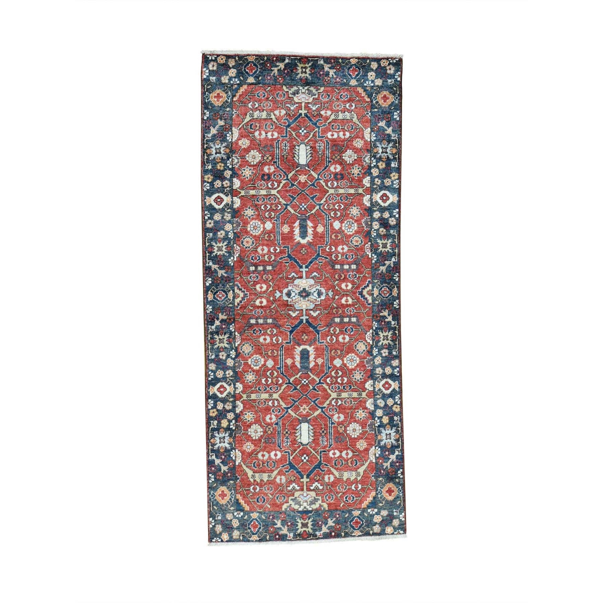 Hand-knotted antiqued heriz runner all over design rug