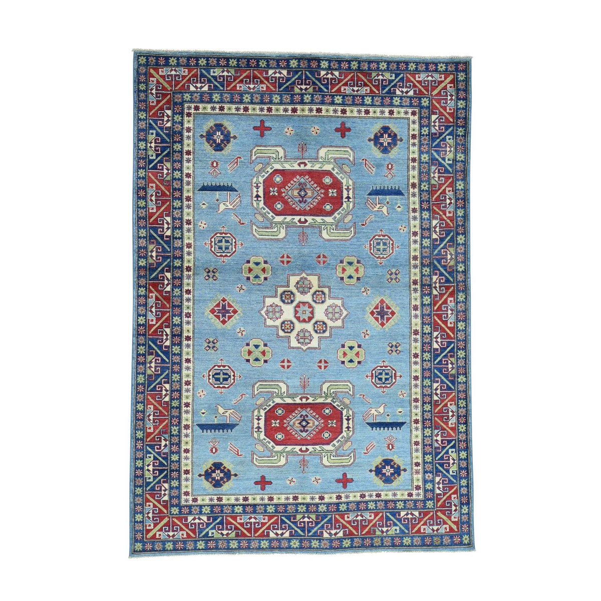 Hand-knotted kazak tribal design light blue oriental carpet
