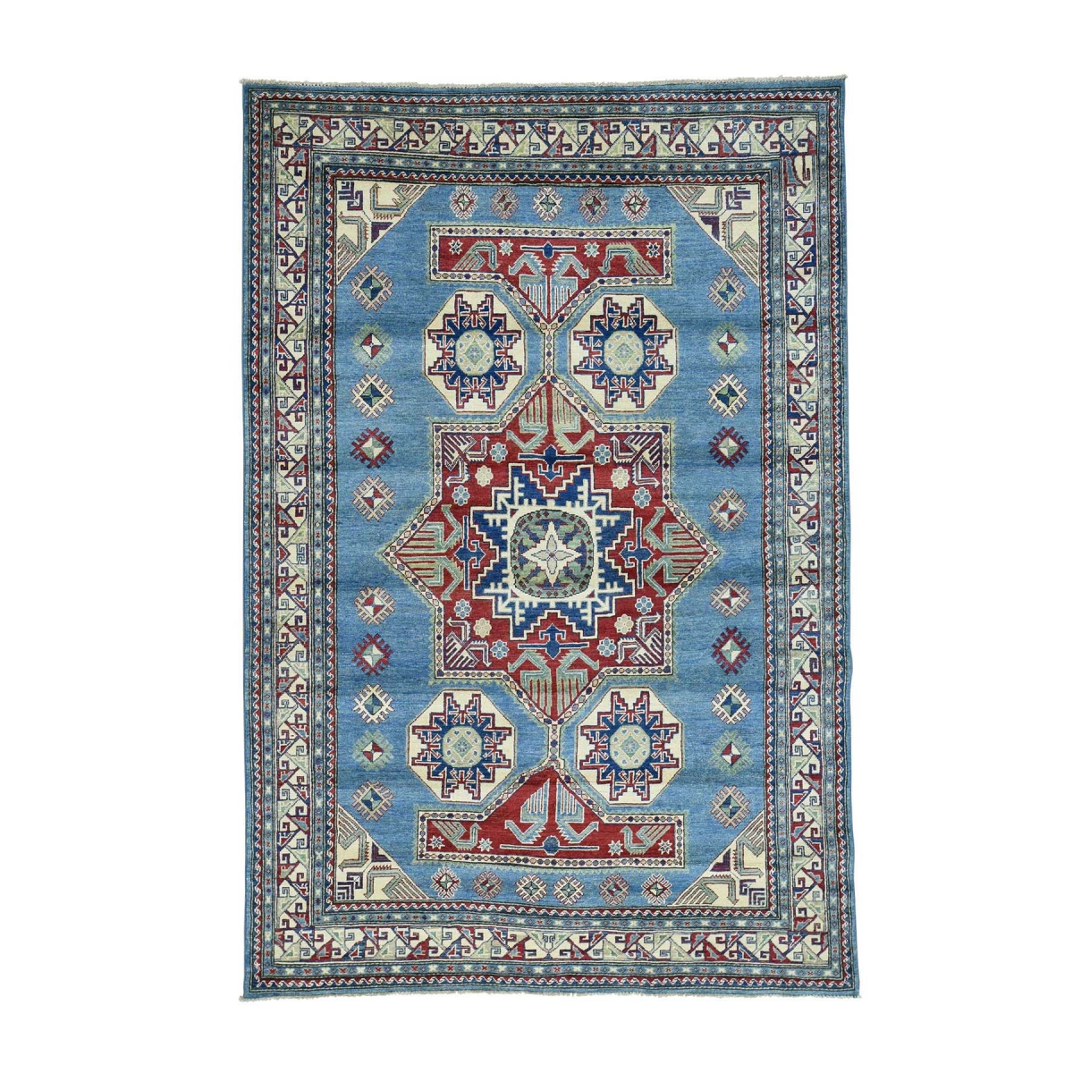 1800 Get A Rug sh30756 6 ft. x 9 ft. Hand Knotted Kazak Tribal Design Oriental Carpet Sky Blue