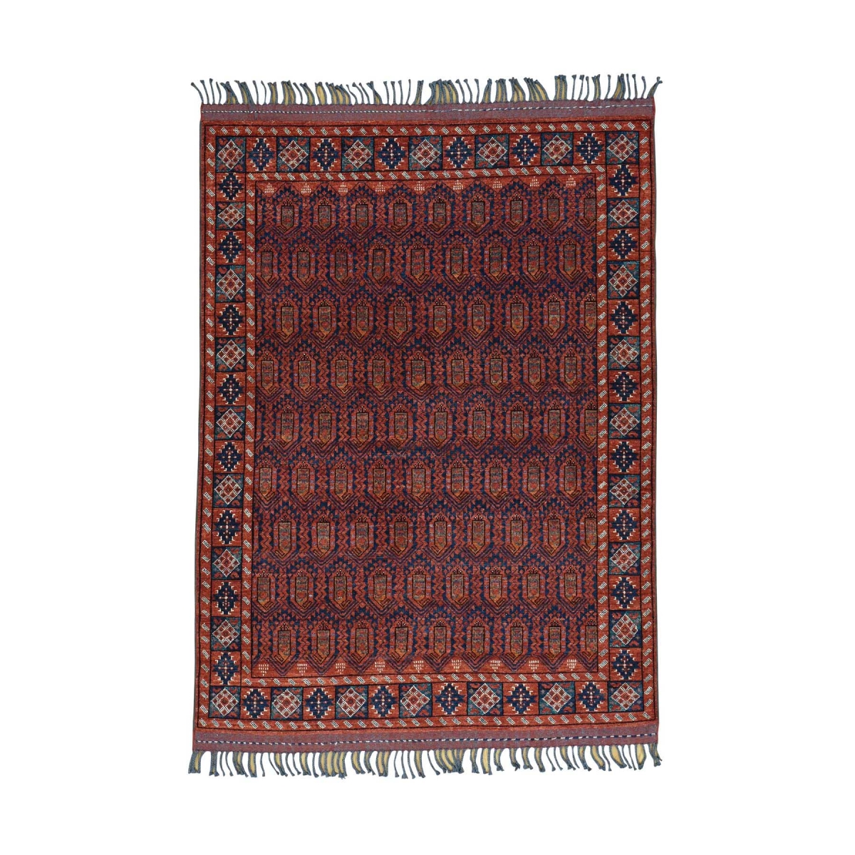 Hand-knotted afghan ersari boteh design oriental rug