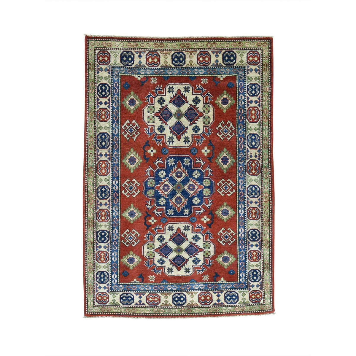 1800 Get A Rug sh30797 4 ft. x 6 ft. Hand Knotted Red Kazak Tribal Design Oriental Rug Red