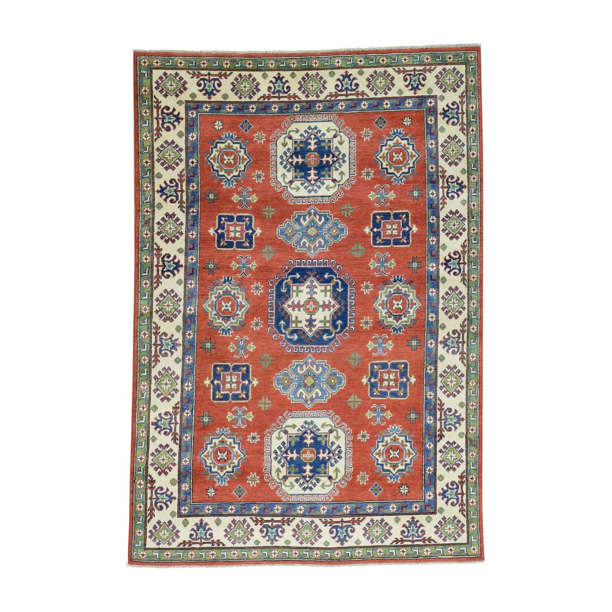 1800 Get A Rug sh30798 5 ft. 7 in. x 8 ft. 2 in. Hand Knotted Kazak Red Tribal Design Oriental Rug Red