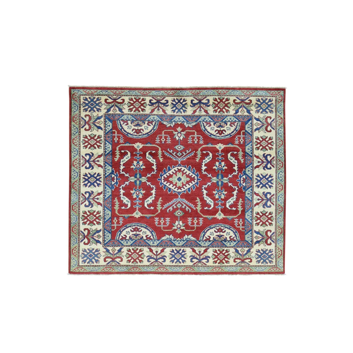 Hand-knotted kazak red squarish tribal design oriental rug