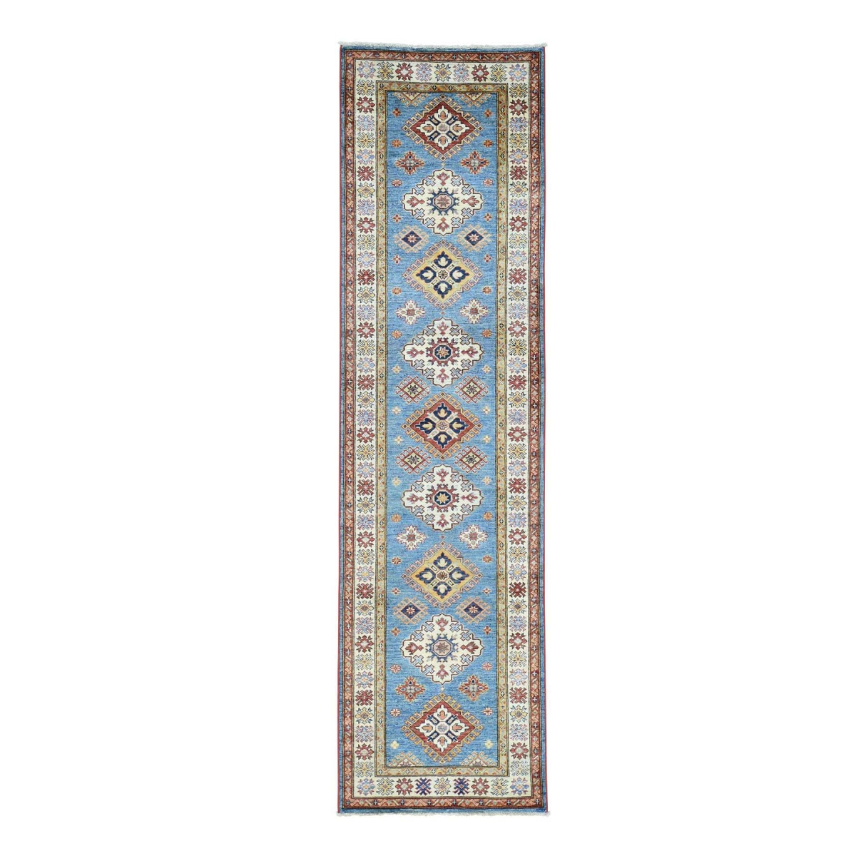 1800 Get A Rug sh30834 2 ft. 7 in. x 9 ft. 9 in. Hand Knotted Super Kazak Runner Geometric Design Oriental Rug Blue