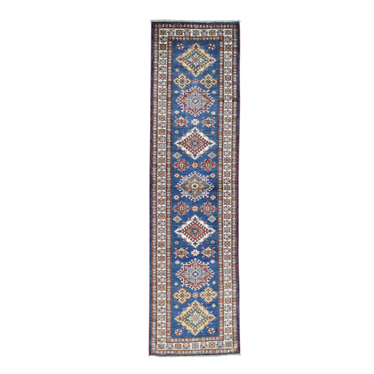Hand-knotted runner geometric design super kazak oriental rug