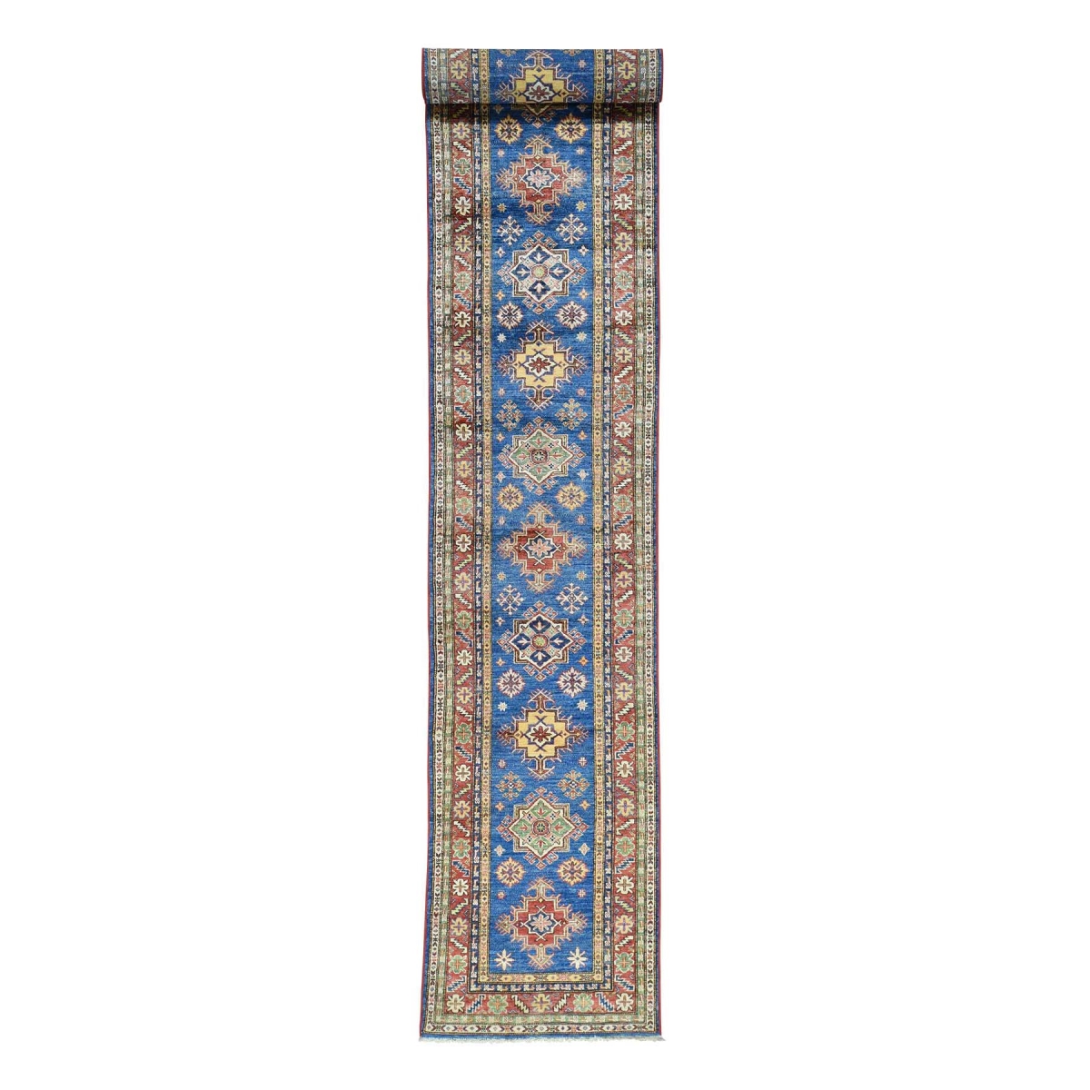 1800 Get A Rug sh30856 2 ft. 7 in. x 19 ft. Hand Knotted Pure Wool Runner Super Kazak Oriental Rug Blue - Extra Large