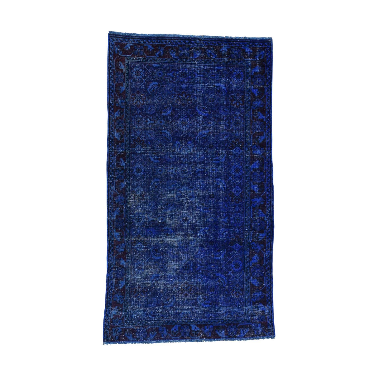 1800 Get A Rug sh30915 3 ft. 5 in. x 6 ft. 3 in. Hand Knotted Worn Overdyed Persian Tabriz Runner Oriental Rug Blue