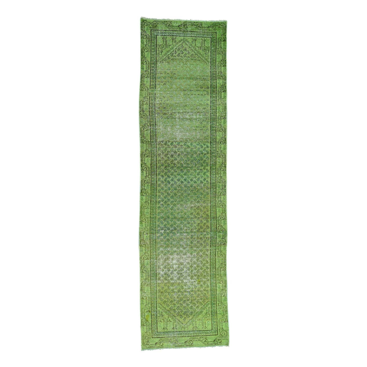 1800 Get A Rug sh30918 3 ft. x 11 ft. 5 in. Hand Knotted Runner Overdyed Persian Sarouk Mir Oriental Rug Green