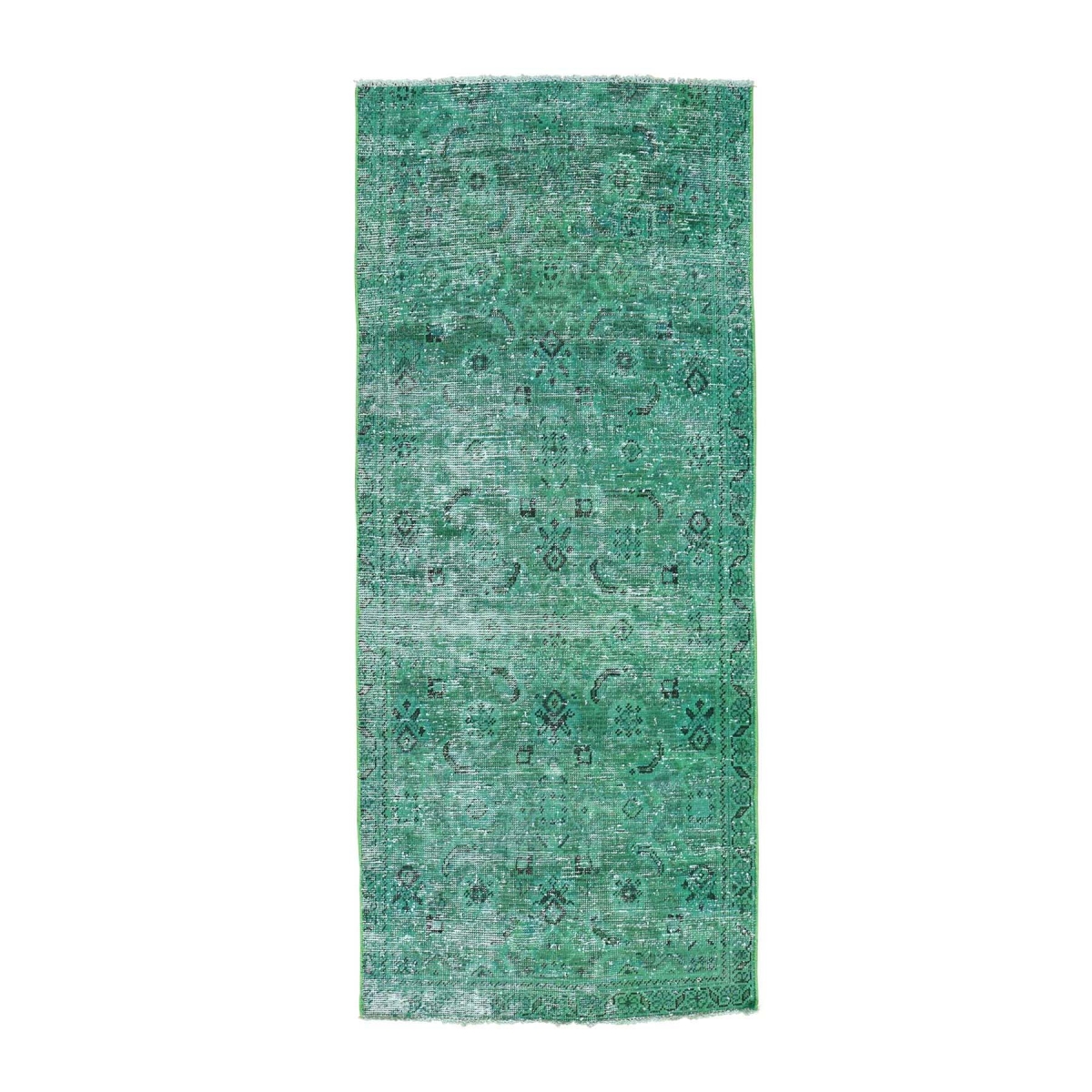 1800 Get A Rug sh30928 3 ft. 3 in. x 7 ft. 7 in. Hand Knotted Worn Overdyed Persian Tabriz Runner Oriental Rug Green