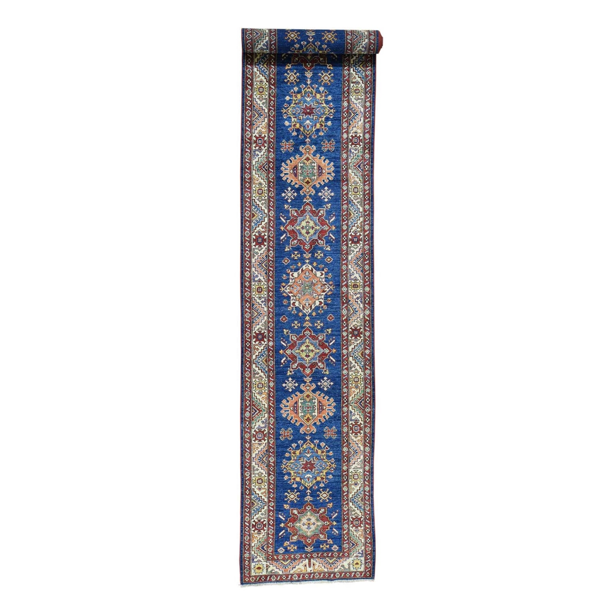 1800 Get A Rug sh30938 2 ft. 9 in. x 17 ft. 4 in. Hand Knotted Super Kazak Runner Tribal Design Oriental Rug Blue - Extra Large