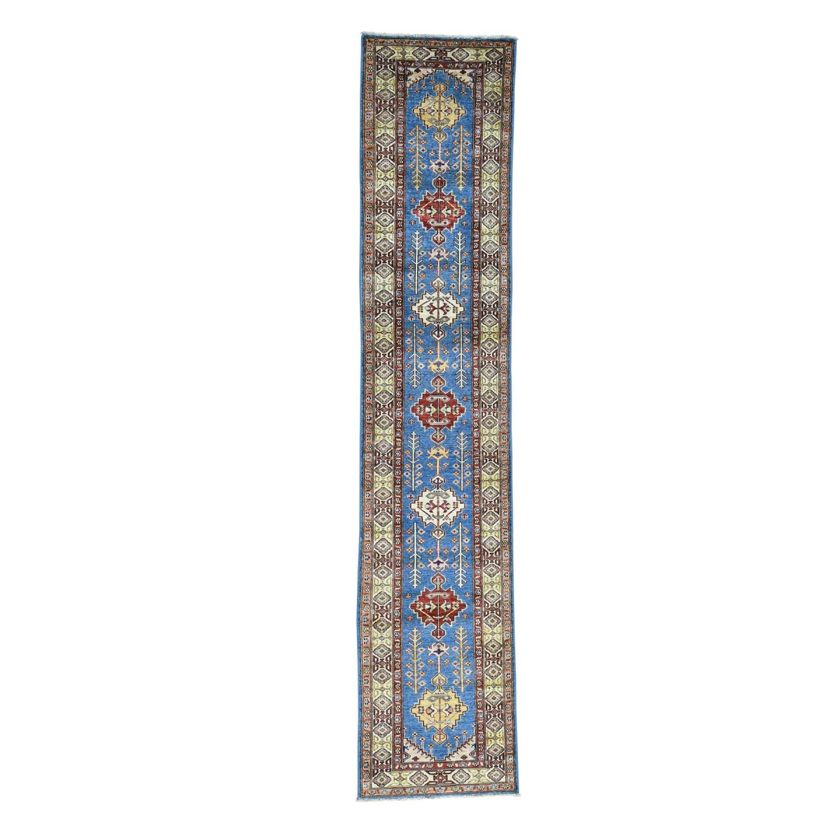 1800 Get A Rug sh30939 2 ft. 7 in. x 12 ft. 9 in. Hand Knotted Geometric Design Super Kazak Runner Oriental Rug Blue