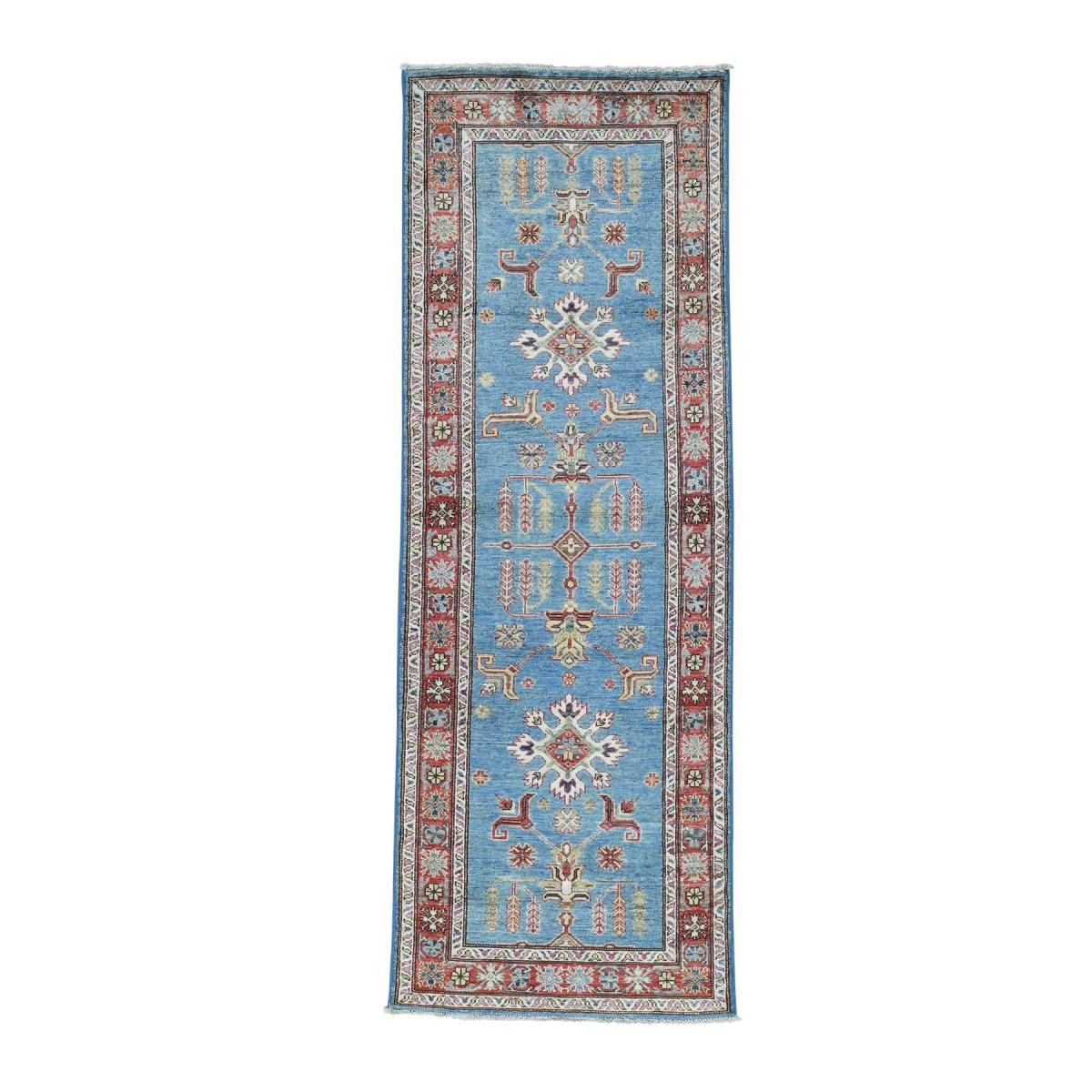 Hand-knotted sky blue super kazak runner oriental rug