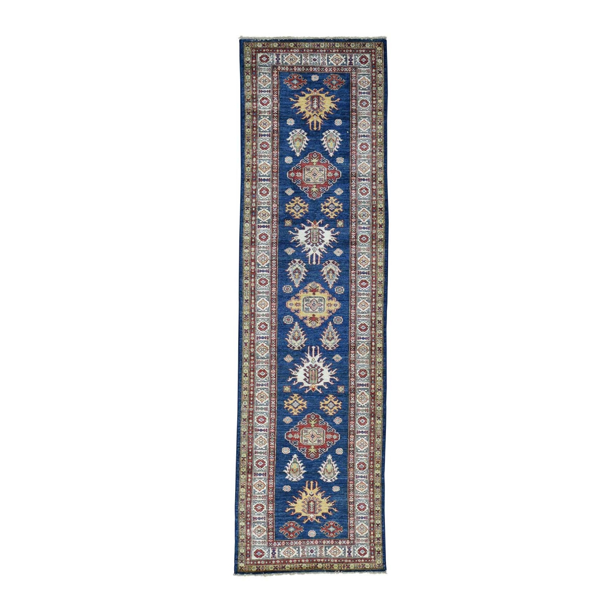 1800 Get A Rug sh30945 2 ft. 9 in. x 10 ft. Hand Knotted Super Kazak Tribal Design Runner Oriental Rug Blue