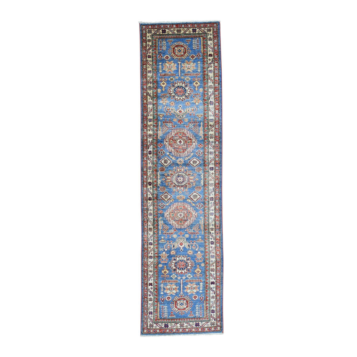 1800 Get A Rug sh31023 2 ft. 7 in. x 10 ft. Hand Knotted Super Kazak Runner Oriental Rug Denim Blue