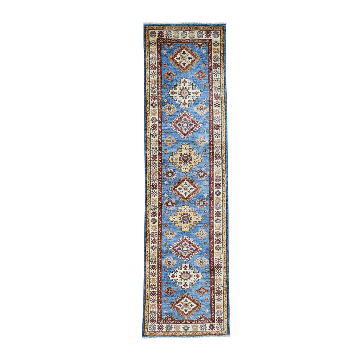 1800 Get A Rug sh31024 2 ft. 8 in. x 10 ft. Hand Knotted Super Kazak Runner Oriental Rug Sky Blue